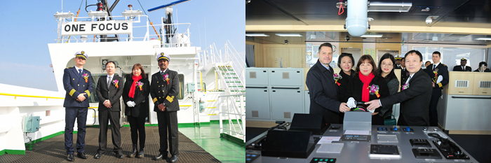 Ms. Yue Juan named the new ship "ONE FOCUS", cut the cables for the new ship, threw a champagne ceremony, and sounded the whistle to wish the new ship and the crew a safe voyage, bringing honor and wealth to the ship owner and charterer.