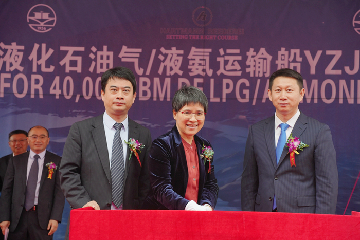 On April 12, The second 40000CBM Dual Fuel LPG/Ammonia Carrier "GASCHEM AMERICA" built by Yangzi-Mitsui Shipbuilding for German Shipowner HARTMANN was successfully signed and delivered. Our group and the HARTMANN held a grand naming ceremony for the new vessel. Ms. Ni Weifang, the godmother, named the new vessel "GASCHEM AMERICA" and tossed champagne.